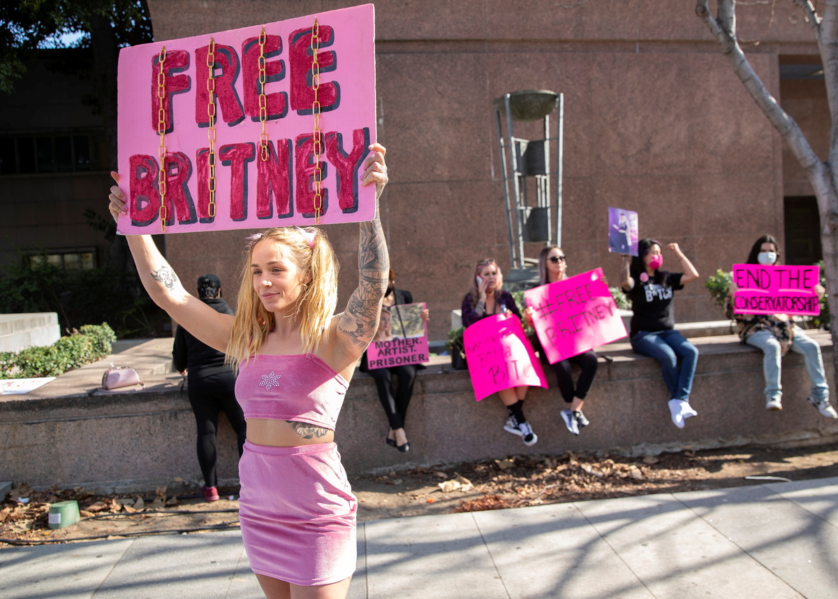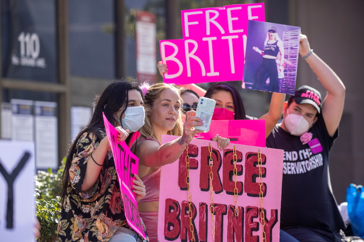 Outside the courthouse on Thursday, a handful of fans from the small but vocal #FreeBritney campaign called for the conservatorship to end.