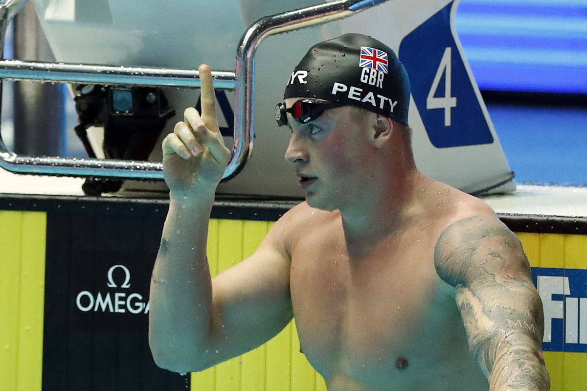 GWANGJU, South Korea (Reuters) - Britain's Adam Peaty became the first to swim the 100 metres breaststroke in under 57 seconds on Sunday, setting a world record of 56.88 in the semi-finals of the world championships in Gwangju, South Korea.