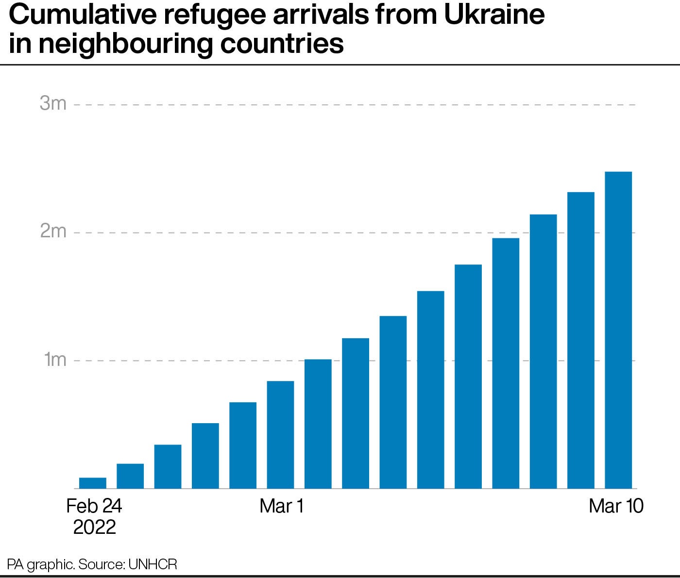 Nearly 2.6 million people are thought to have fled Ukraine since Russia’s invasion on February 24, according to the United Nations High Commissioner for Refugees (UNHCR) data portal.