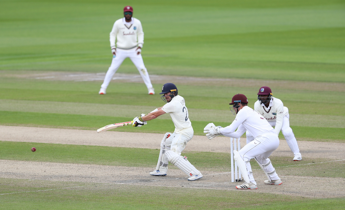 Sibley was the first England wicket to fall after a 114-run partnership with Burns, trapped leg before wicket by Windies captain Jason Holder.