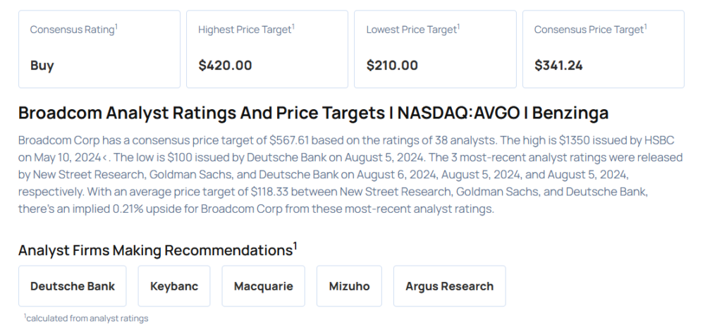 - Deutsche Bank raised the price target for Broadcom Inc. (NASDAQ:AVGO) from $350 to $400. Deutsche Bank analyst Ross Seymore maintained a Buy rating. Broadcom shares closed at $356.70 on Monday. See how other analysts view this stock.