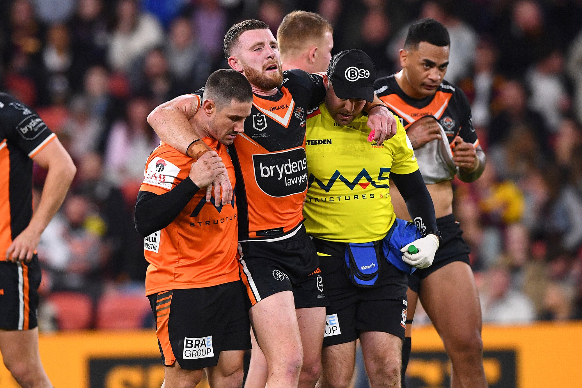 The Tigers lock was in immediate distress and pain and hobbled from the field with the help of trainers.