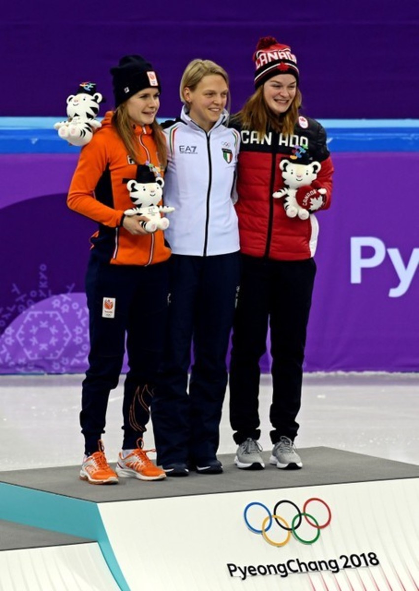 The 23-year-old grabbed third place in the women's 500-metre final at the Pyeongchang Winter Olympics on Tuesday but her joy was short-lived.