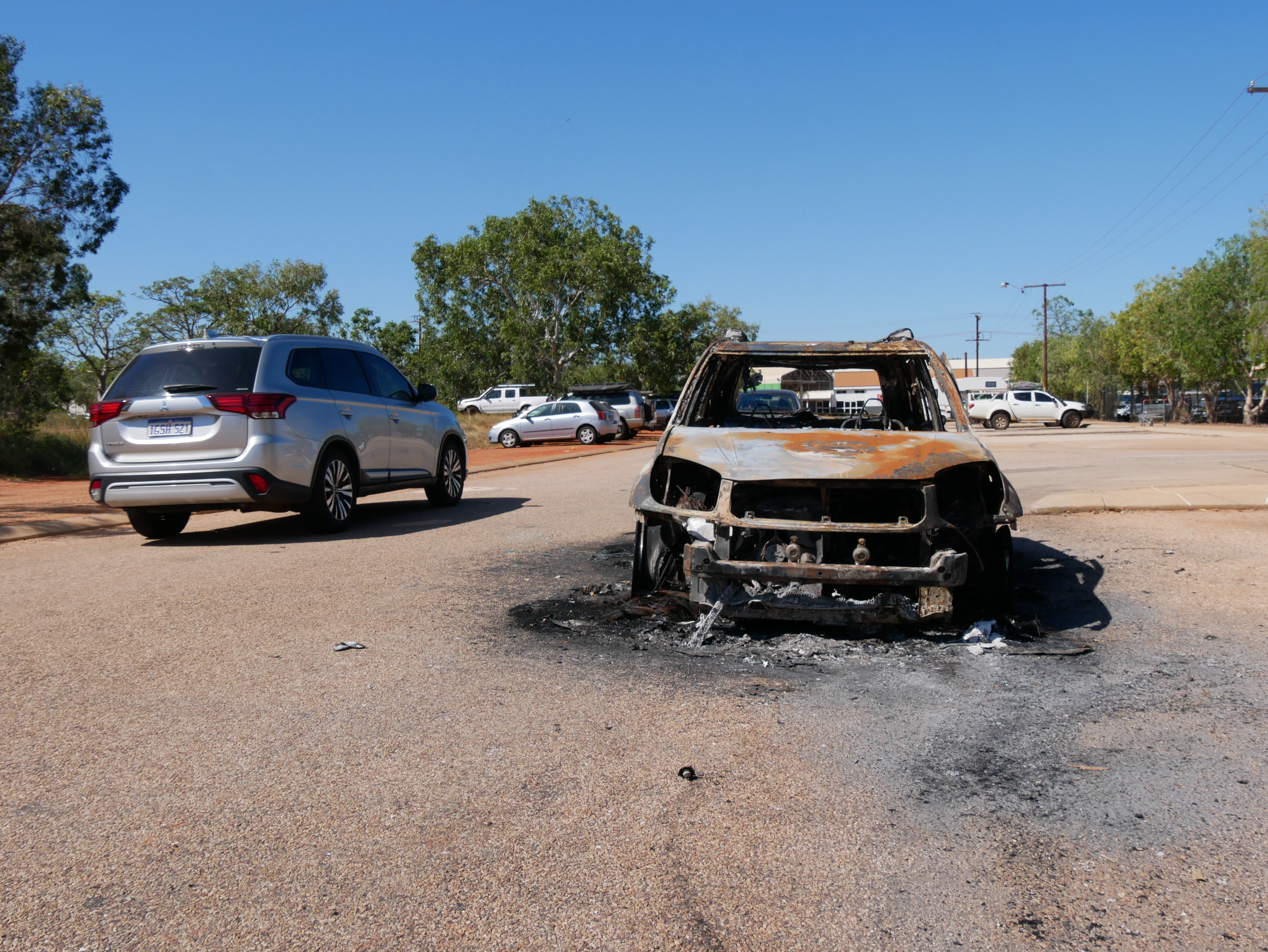 Stolen and burnt out cars in Broome have become part of the landscape for locals, with the community left to shoulder the cost of wrecks often left to decay for weeks in the town.