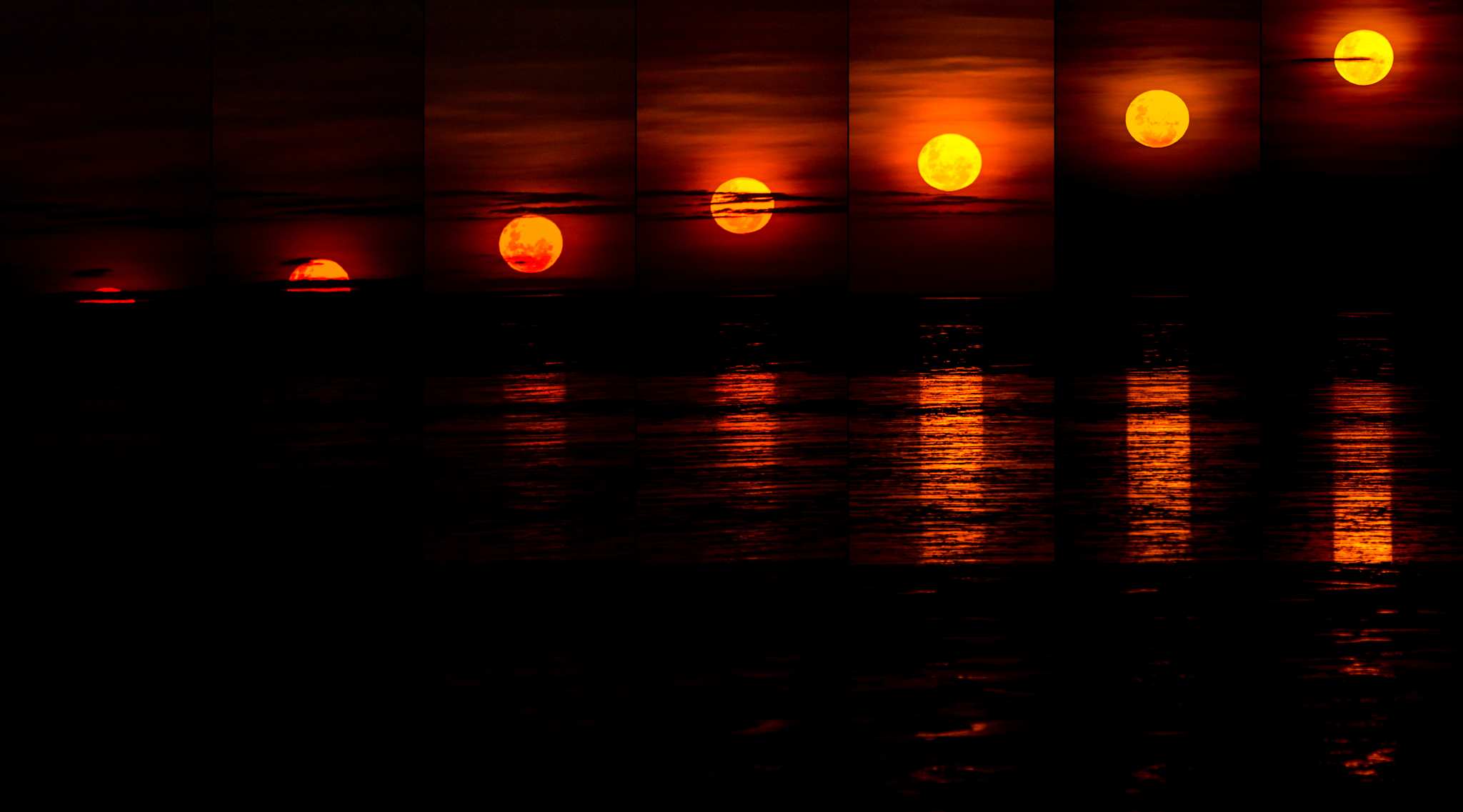 "The ripples in the mud have water in them, and they create a direct reflection of the moon as it appears over the horizon."