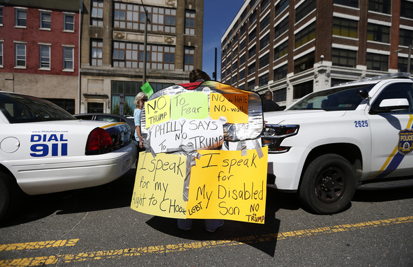 PHILADELPHIA _ GOP presidential candidate Donald Trump arrived in North Philadelphia on Friday as protesters gathered outside a church venue where he was to meet privately with African-American voters _ stirring visible unwelcome for the GOP presidential nominee in the City of Brotherly Love.