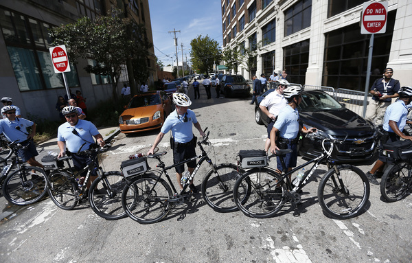 As many as 100 Philadelphia police officers were assembled on North Broad near Fairmount.