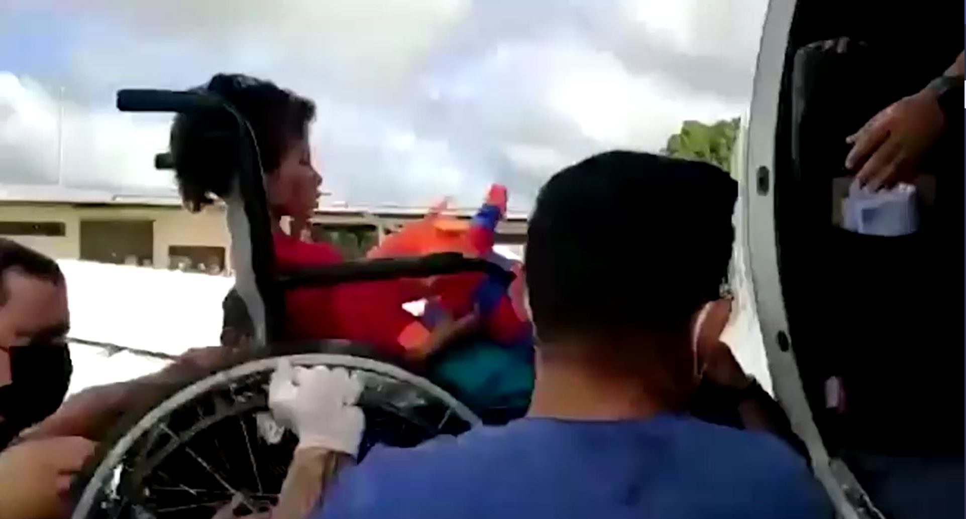 Video showed them being loaded into an ambulance on wheelchairs.