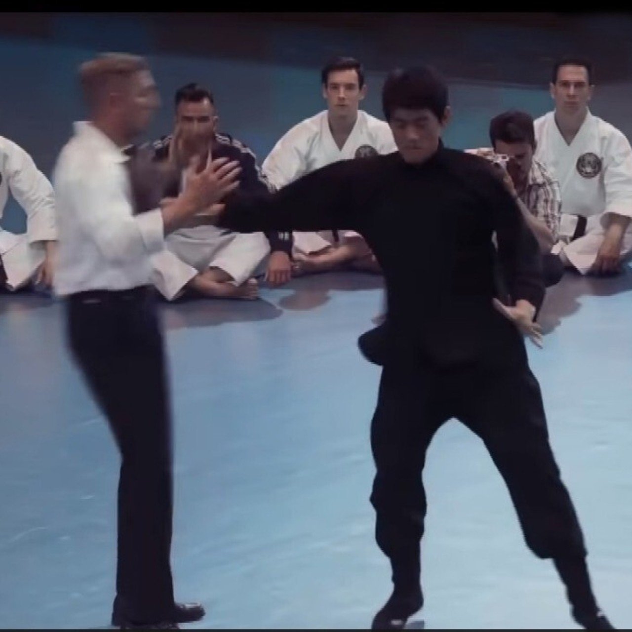 The star of the Big Boss and Enter The Dragon also showed his famous two-finger push-ups to the martial arts community for the first time at the Long Beach international karate championships.