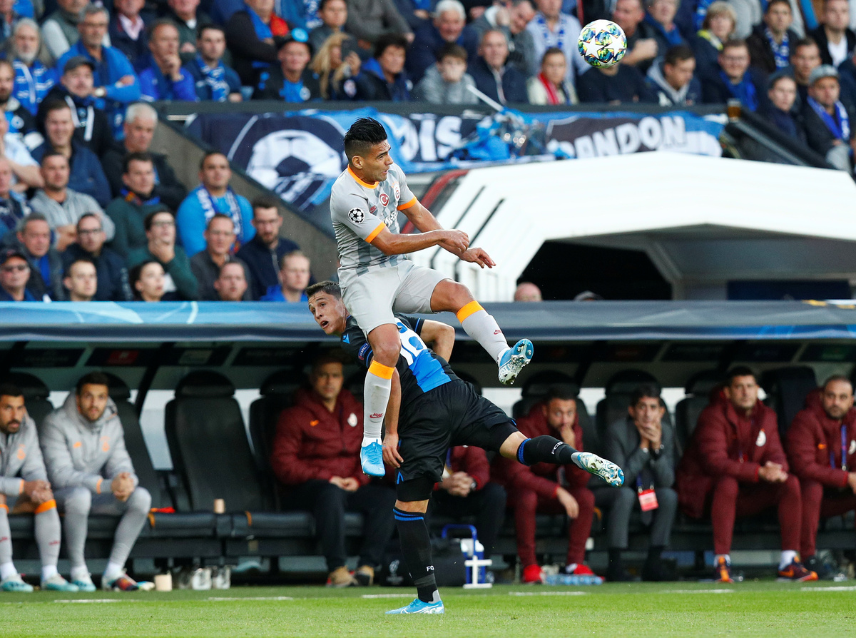 Soccer Football - Champions League - Group A - Club Brugge v Galatasaray - Jan Breydel Stadium, Bruges, Belgium - September 18, 2019 Galatasaray's Radamel Falcao in action with Club Brugge's Federico Ricca REUTERS/Francois Lenoir