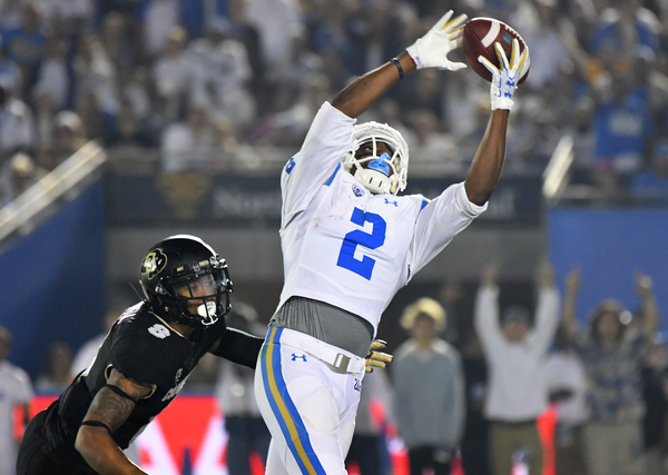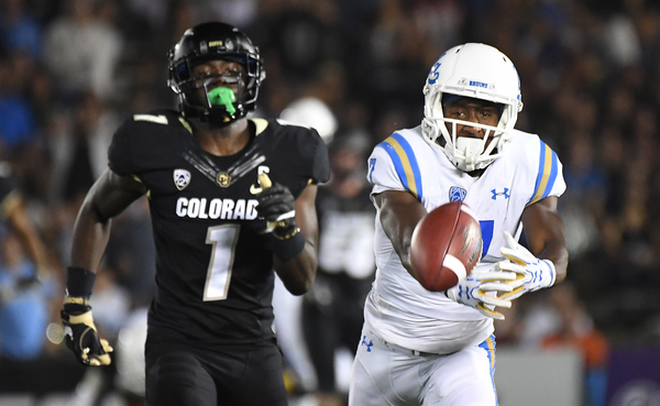 The Bruins' defense appeared to be on the verge of a stop early in the game when cornerback Darnay Holmes smashed into Lindsay on a short pass, appearing to leave Colorado facing a fourth and eight.
