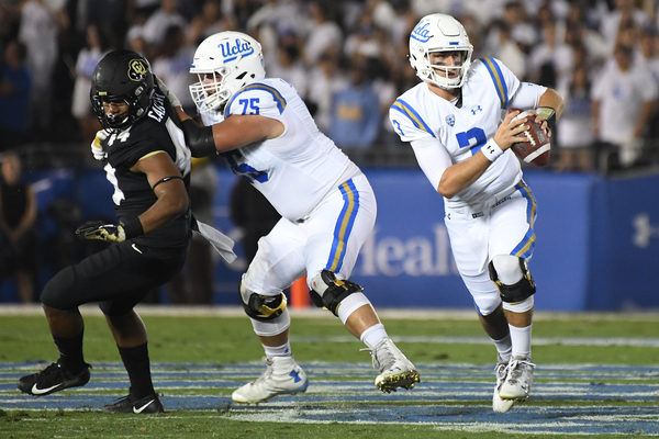 Not that it was perfect. UCLA, wearing all white outfits including matching helmets for the first time since 2011 as part of a "White Out," suffered through some sloppiness early in the fourth quarter. The Bruins were called for a delay of game and then what appeared to be a premature snap tumbled to the ground before quarterback Josh Rosen picked up the ball and eventually flung it out of bounds.