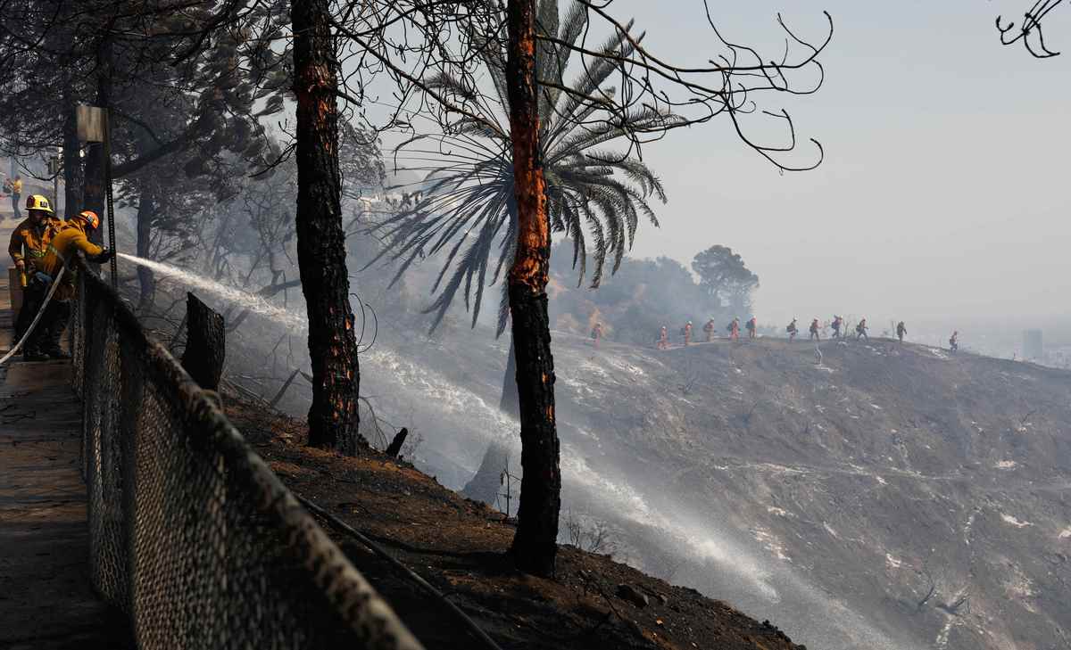 No injuries were reported from the fire, which followed a weekend heat wave that baked Los Angeles and much of the rest of Southern California, causing widespread power outages and contributing to a destructive wildfire in Santa Barbara County.