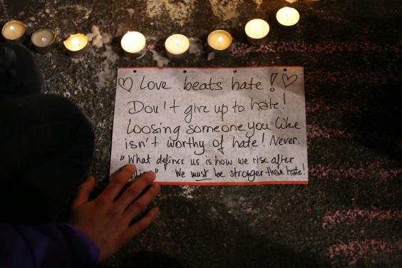 It has become a giant message board for those wanting to express their respect for the victims, with slogans such as "spread love", "Live and Let Live", and "we are one".