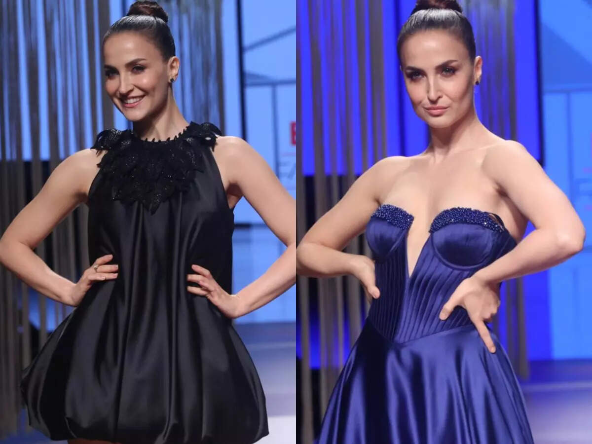 Fun-filled bright colours on the cotton base fabrics and modern resort cuts and silhouettes have created an instant temptation in the mind of a buyer. It's funky, cute and summery for the season with ease and allure mixed in the bowl. Who would be more Apt than gracious Elly AvrRam to become a muse for these young and dynamic students? It was the most surprising moment when Miss EvrRam walks with a little tease in a black little barbie dress which turns into a stunning ink-blue silk gown in just a few seconds.