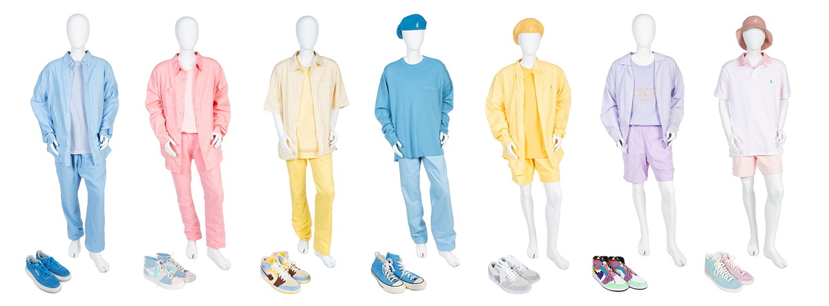 The costumes include the T-shirts, hats, sneakers, pants and shirts worn by the South Korean boy band during the final dance sequence of the music video for "Dynamite" in August.