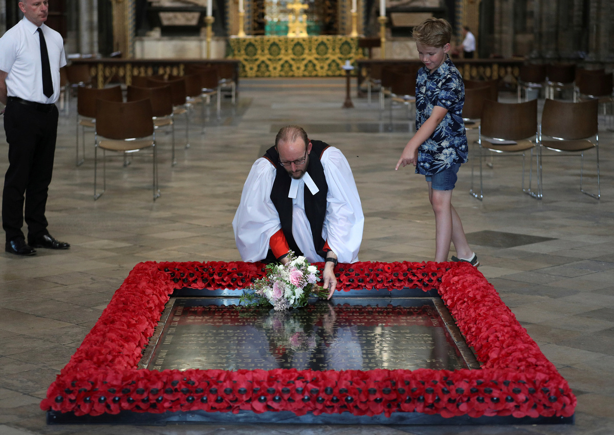 "No hymns were sung, but a selection of music was played. The National Anthem was played but not sung."