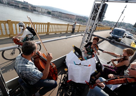 The prestigious orchestra, led by renowned composer Iván Fischer, took to the streets with that message: Five members of the orchestra performed classical music to motorists and passers-by from a truck in the afternoon traffic in the Hungarian capital on Wednesday.