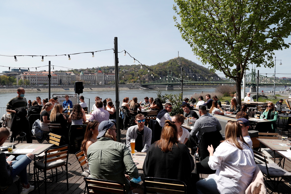"We have been waiting for this moment when we can sit out again on a nice sunny day and have a drink for more than six months," said local woman Bernadett. "This is fantastic."