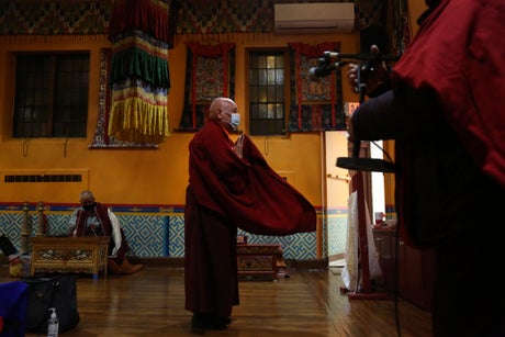 Inside the temple in the New York City borough of Queens, monks clad in maroon robes chanted and lit incense and candles at an altar before a golden statue of Buddha.