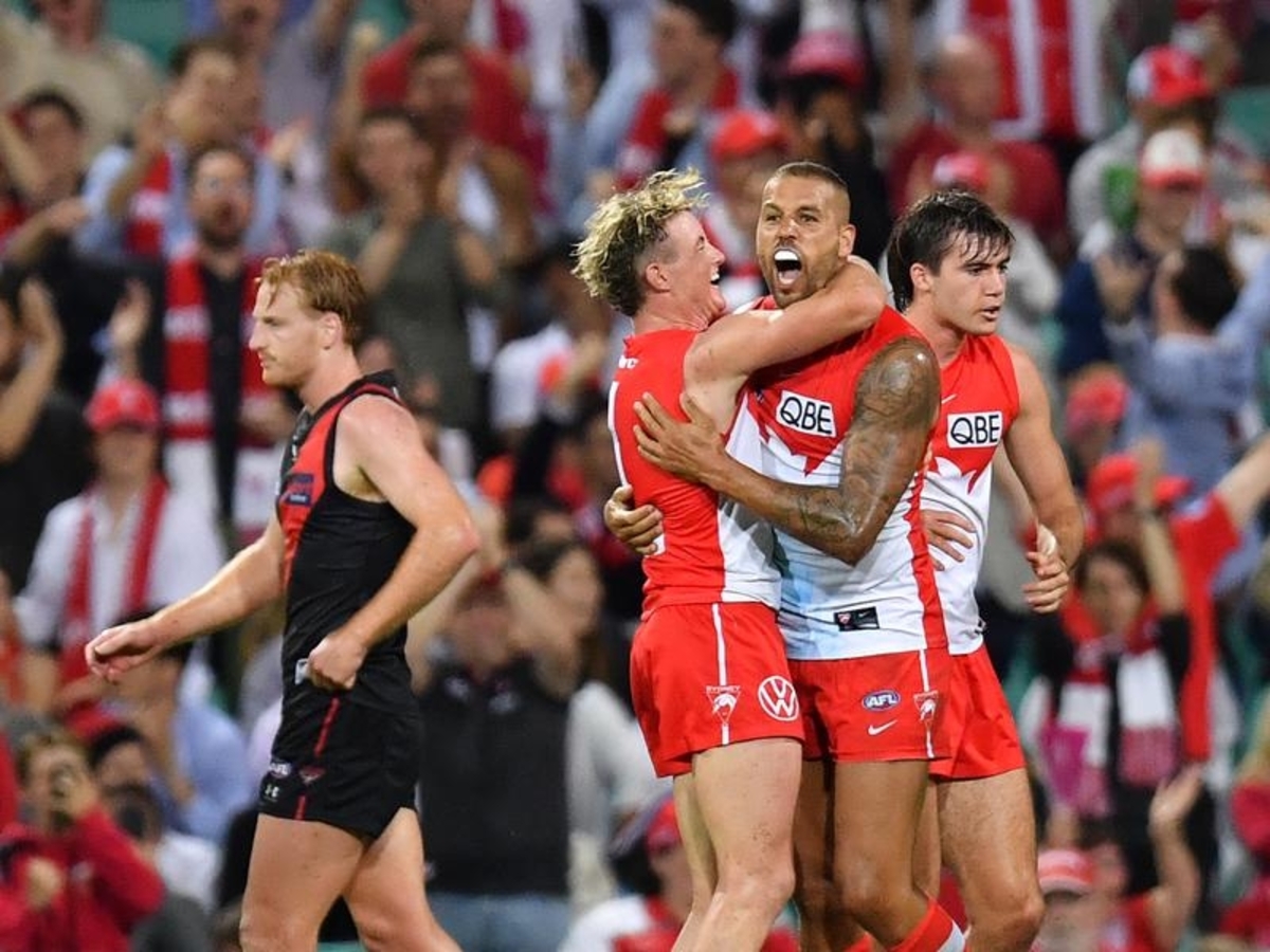 Essendon fought to the end, with Cale Hooker booting a late goal and Sydney defender Dane Rampe making a desperate touch to save another, but time ran out for the visitors as they went down by three points.