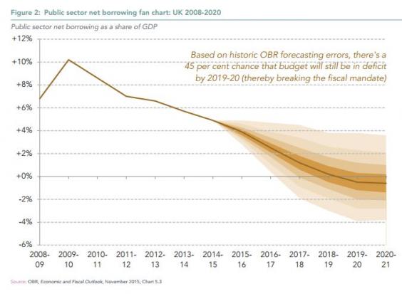 Borrowing in the first ten months of 2015-16 was higher than projected. There's now a 45 per cent chance that Osborne will miss his target of a Budget surplus by 2020.