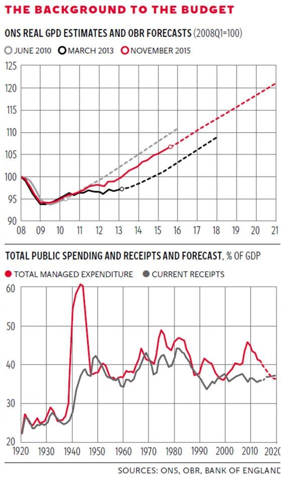 So three issues; which matters most? Outstandingly the most important thing will be the global outlook. If growth continues at something over 2 per cent, we scramble through. If there is a year of growth between 1 and 2 per cent, the Chancellor’s ambitious deficit-cutting programme is in trouble.