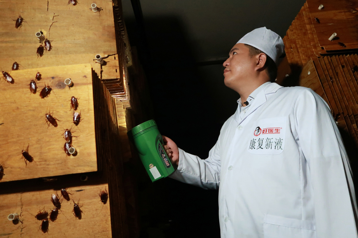 "The essence of cockroach is good for curing oral and peptic ulcers, skin wounds and even stomach cancer," said Wen Jianguo, manager of Gooddoctor's cockroach facility.