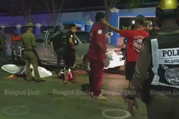 Thawat Suksangkhan, 63, was driving his pickup when he was attacked by men on motorcycles at the entrance to Nakhon Luang Udomrat Witthaya School in tambon Nakhon Luang about 5.30am. He was dropping his wife off at the school, where she prepares food for the students each weekday.