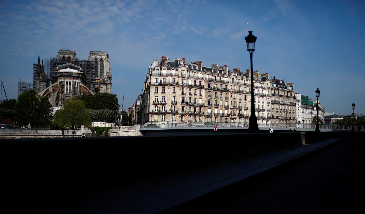 A view shows Notre-Dame de Paris Cathedral, which was damaged in a devastating fire one year ago, as restoration work resumes slowly after an interruption due to the lockdown imposed to slow the rate of the coronavirus disease (COVID-19) in Paris, France, April 27, 2020. REUTERS/Gonzalo Fuentes