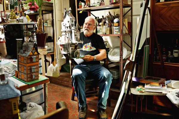 Yet he's never publicly exhibited the art he's dedicated himself to in the 16 or so years he's been retired. For all that time, he has quietly and contentedly filled the back of his house with elaborate models and cityscapes.