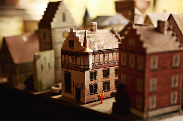 Kellison has built dollhouses, complete with working lights and families in still life; in one, a party is about to commence. He has built castles, lighthouses and entire towns, all out of paper. He has built an entire fishing village, and a house with a working elevator. These lightweight models fill the shelves of the back addition of Kellison's little house in Raleigh.