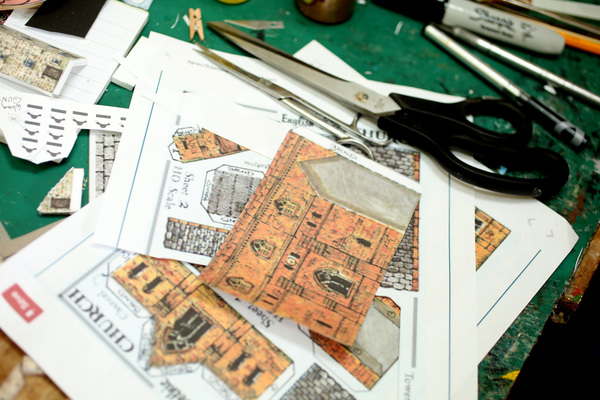 After completing numerous models from these patterns, he decided to create his own. He does this by printing textures _ brick or corrugated roof, for example _ directly to card stock. Then he creates.