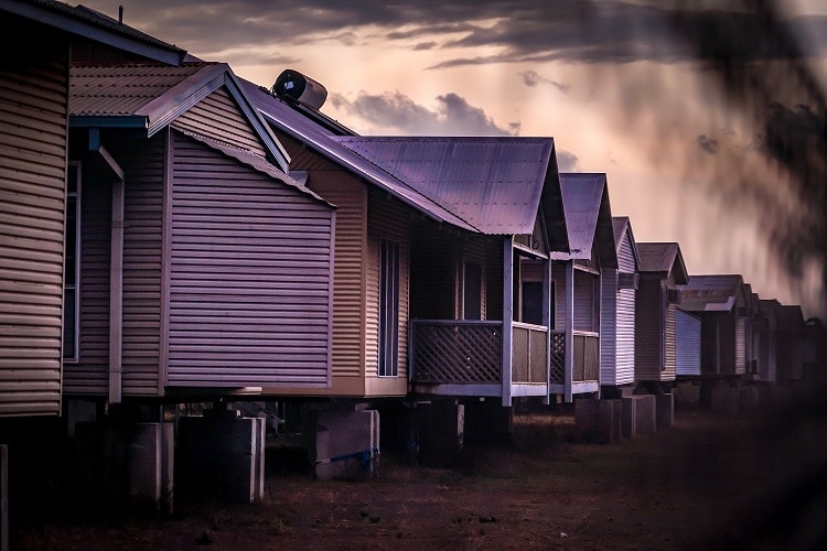 An example of lightweight housing is an insulated stud frame, plasterboard inside, and protected outside with corrugated iron or similar.