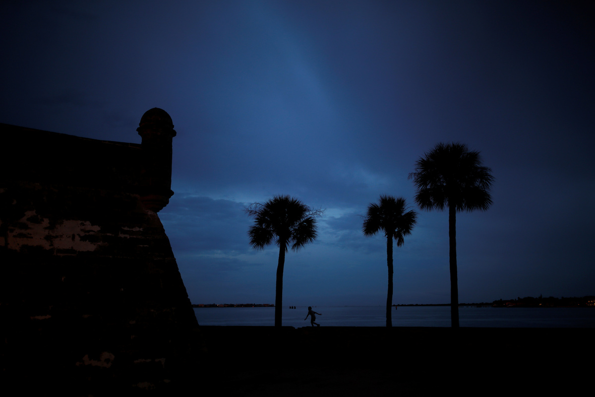 A boy runs outside Castillo de San Marcos masonry fort in St. Augustine, Florida, U.S., August 28, 2019. The construction of the masonry fort began in the early 1670s. Local native Americans, convicts, African American slaves, as well as skilled workers from Cuba worked on the construction of the fort. REUTERS/Carlos Barria