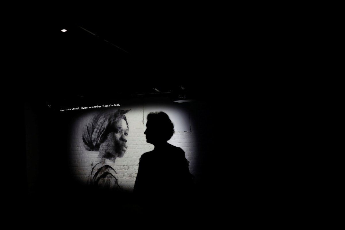 A visitor watches a video presentation at James Madison's Montpelier in Orange County, Virginia, U.S., August 20, 2019. Built in 1764 using enslaved labor, the mansion belonged to the family of James Madison, the fourth President of the United States until his death in 1836. REUTERS/Carlos Barria