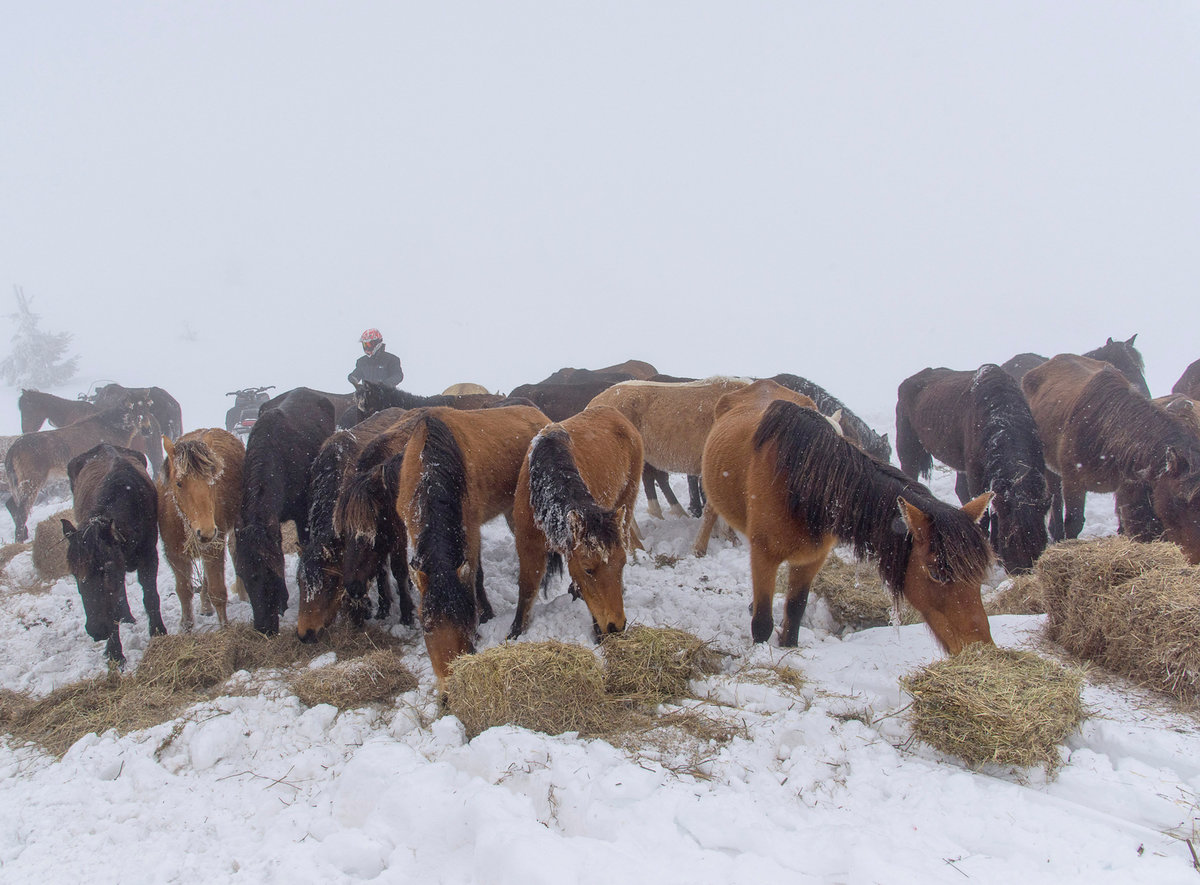 "They are in a terrible state," said Elitsa Dimitrova, one of the activists who found the animals. "The horses are in great danger because of the deep snow and low temperatures and because of the wolves. They still lack water, food and shelter.