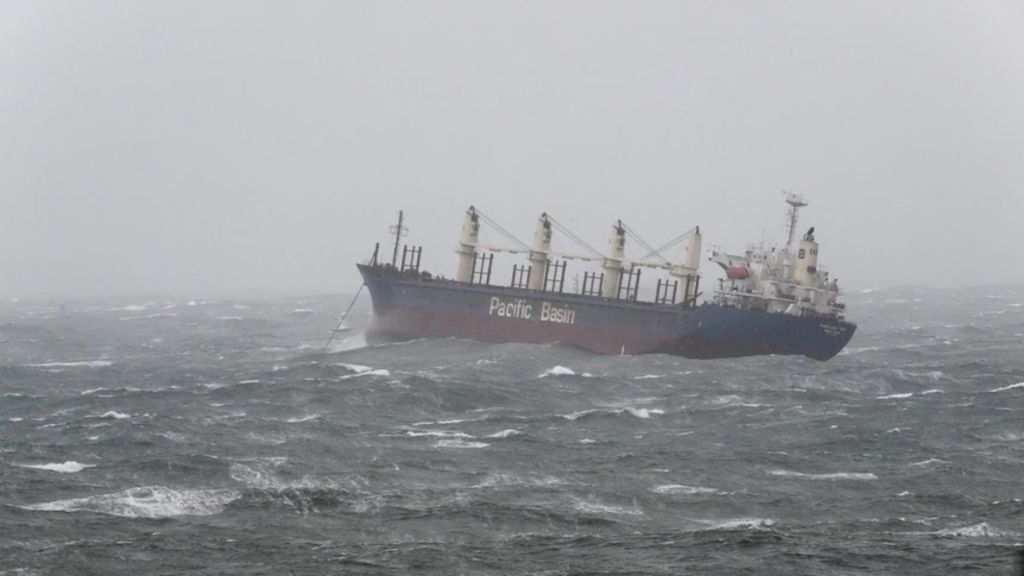 "We were attempting to tow the vessel offshore but unfortunately the bad weather took a turn which meant the line from the tug to the ship snapped in the bad weather.