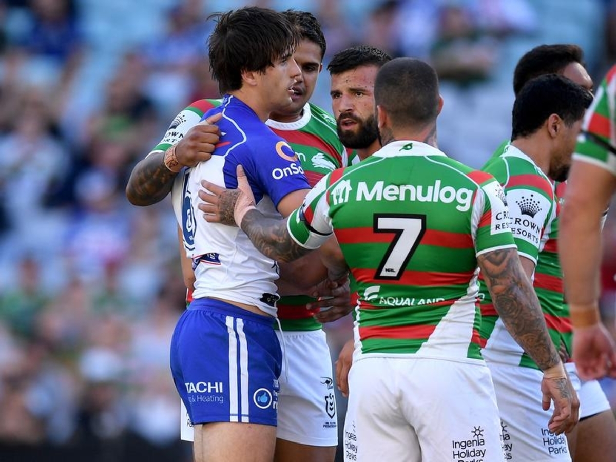 After stumbling twice and having to be held up by South Sydney players, Lewis was assessed on-field by a Bulldogs trainer before being allowed to stay on.