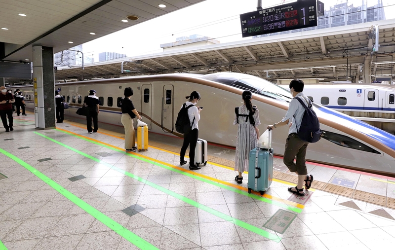 People began to head to their hometowns and holiday destinations Saturday for the Obon holiday. The unusual summer this year has been marked by the unstoppable spread of the novel coronavirus, and the platforms of Shinkansen bullet trains heading from Tokyo and Osaka to other parts of Japan were deserted as many people refrained from returning home.