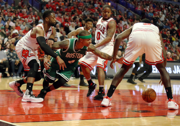 The Bulls trailed by as many as 20 points in the second quarter but took a 65-63 lead on a Lopez hook shot. Boston responded with a 12-0 run, with Thomas alternating spectacular finishes at the rim with primo feeds to big men.