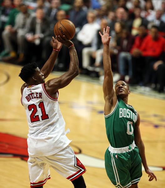 Jimmy Butler missed 11 of his first 12 shots and never traveled to the free-throw line after averaging 8.9 attempts per game during the regular season, shooting 7 for- 1 for 14 points. Rondo's replacements, Jerian Grant and Michael Carter-Williams, combined for three assists and seven turnovers.