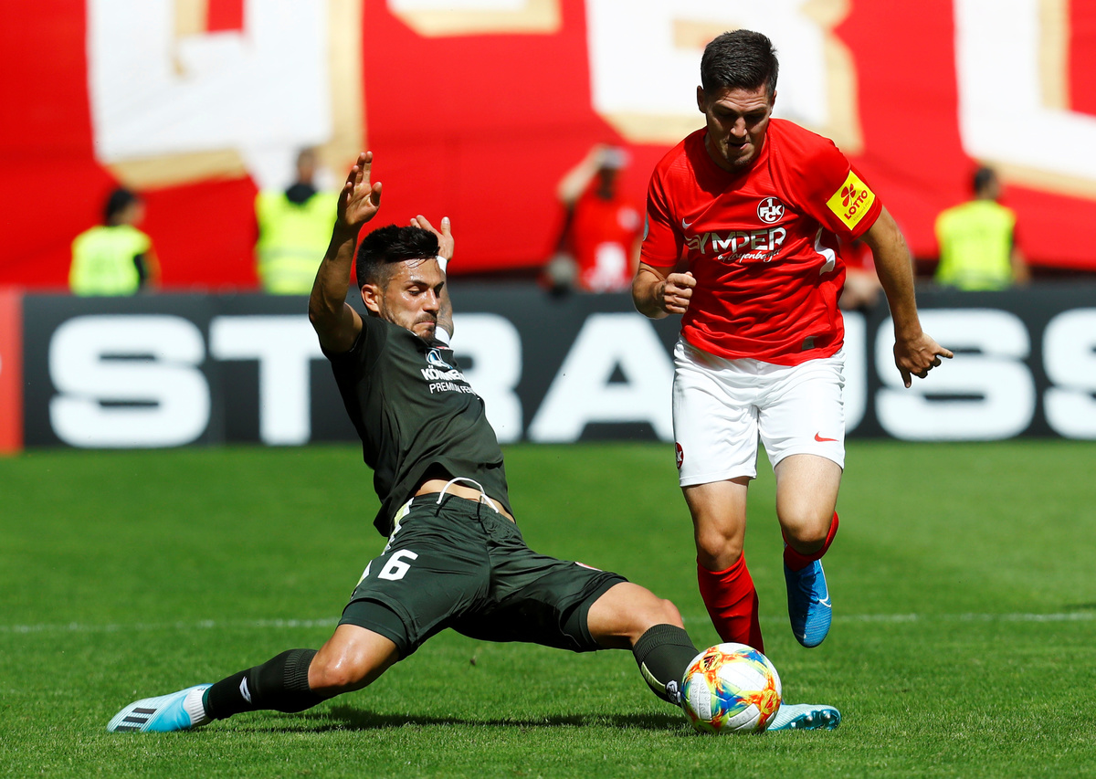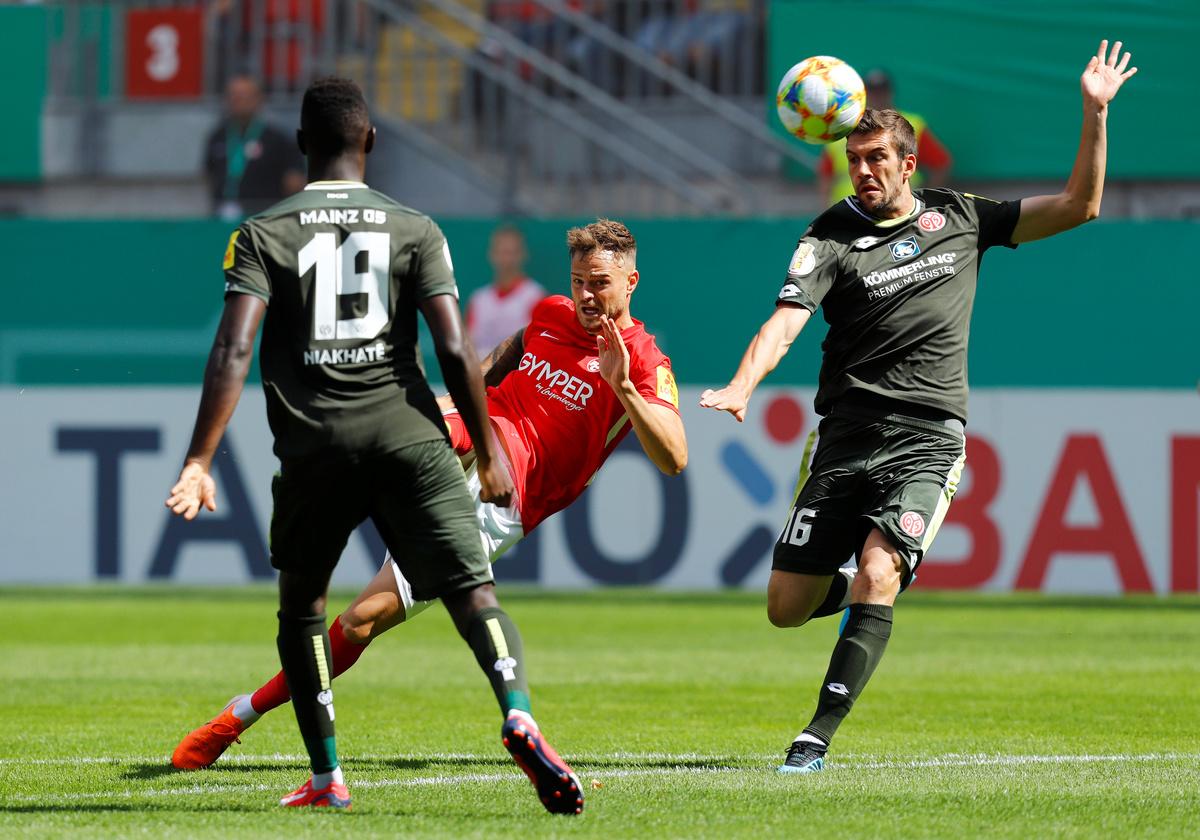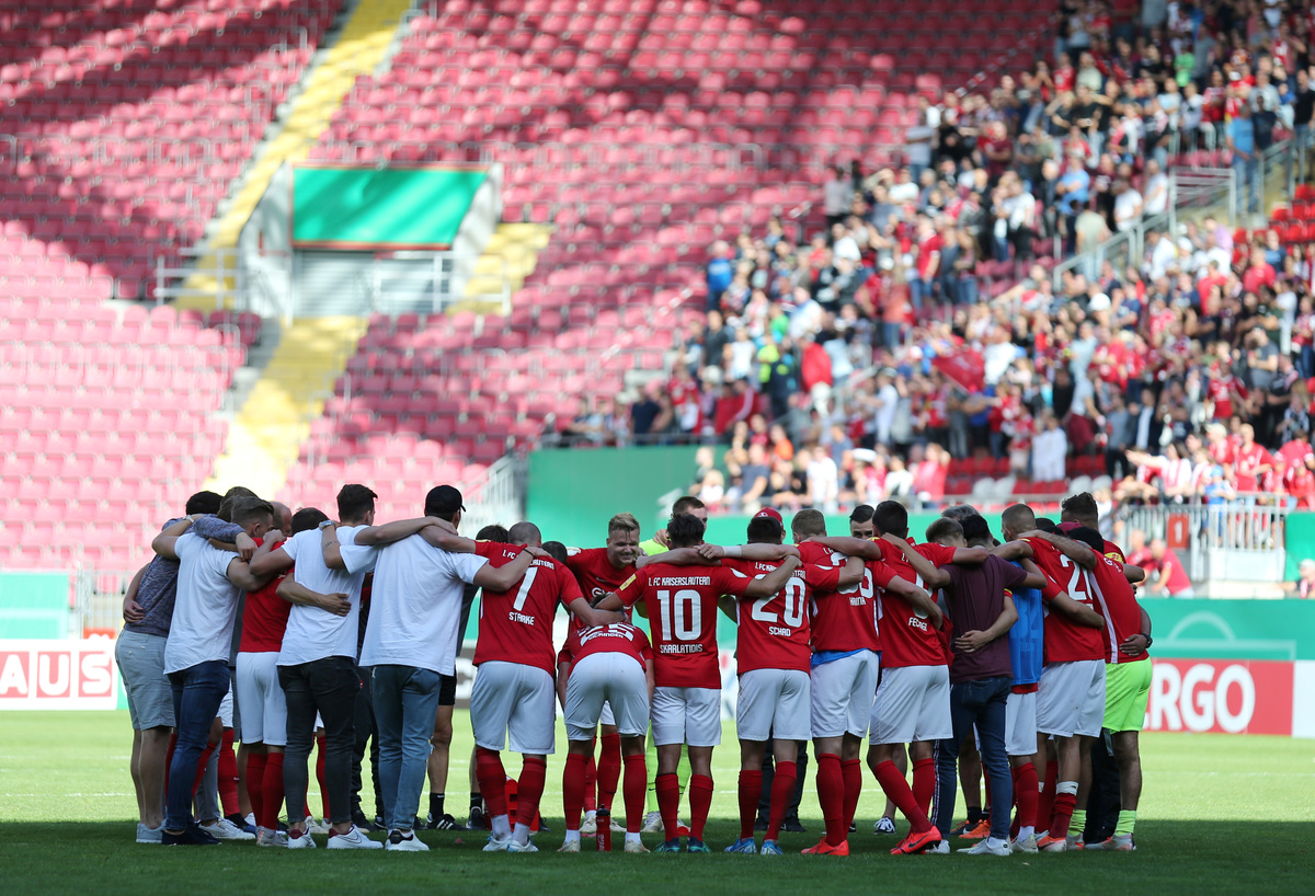 Soccer Football - DFB Cup - First Round - FC Kaiserslautern v 1.FSV Mainz 05 - Fritz-Walter Stadium, Kaiserslautern, Germany - August 10, 2019 FC Kaiserslautern players celebrate after the match with a team huddle REUTERS/Ralph OrlowskiSoccer Football - DFB Cup - First Round - FC Kaiserslautern v 1.FSV Mainz 05 - Fritz-Walter Stadium, Kaiserslautern, Germany - August 10, 2019 FC Kaiserslautern players celebrate after the match REUTERS/Ralph OrlowskiSoccer Football - DFB Cup - First Round - FC Kaiserslautern v 1.FSV Mainz 05 - Fritz-Walter Stadium, Kaiserslautern, Germany - August 10, 2019 1.FSV Mainz 05's Moussa Niakhate in action with FC Kaiserslautern's Timmy Thiele REUTERS/Ralph OrlowskiSoccer Football - DFB Cup - First Round - FC Kaiserslautern v 1.FSV Mainz 05 - Fritz-Walter Stadium, Kaiserslautern, Germany - August 10, 2019 1.FSV Mainz 05's Stefan Bell and Moussa Niakhate in action with FC Kaiserslautern's Timmy Thiele REUTERS/Ralph OrlowskiSoccer Football - DFB Cup - First Round - FC Kaiserslautern v 1.FSV Mainz 05 - Fritz-Walter Stadium, Kaiserslautern, Germany - August 10, 2019 1.FSV Mainz 05's Florian Muller during the match REUTERS/Ralph Orlowski