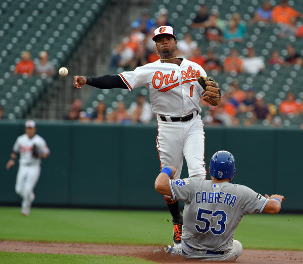 New shortstop Tim Beckham took the field for the first time as an Oriole Tuesday and delivered a multi-hit game, with a single and a double in four at-bats. He did not get a lot of action at short, but ranged far to his right to flag down a sharp bouncer by Salvador Perez and threw back across his body to get a force out at second base. The throw, however, almost pulled Schoop off the bag.
