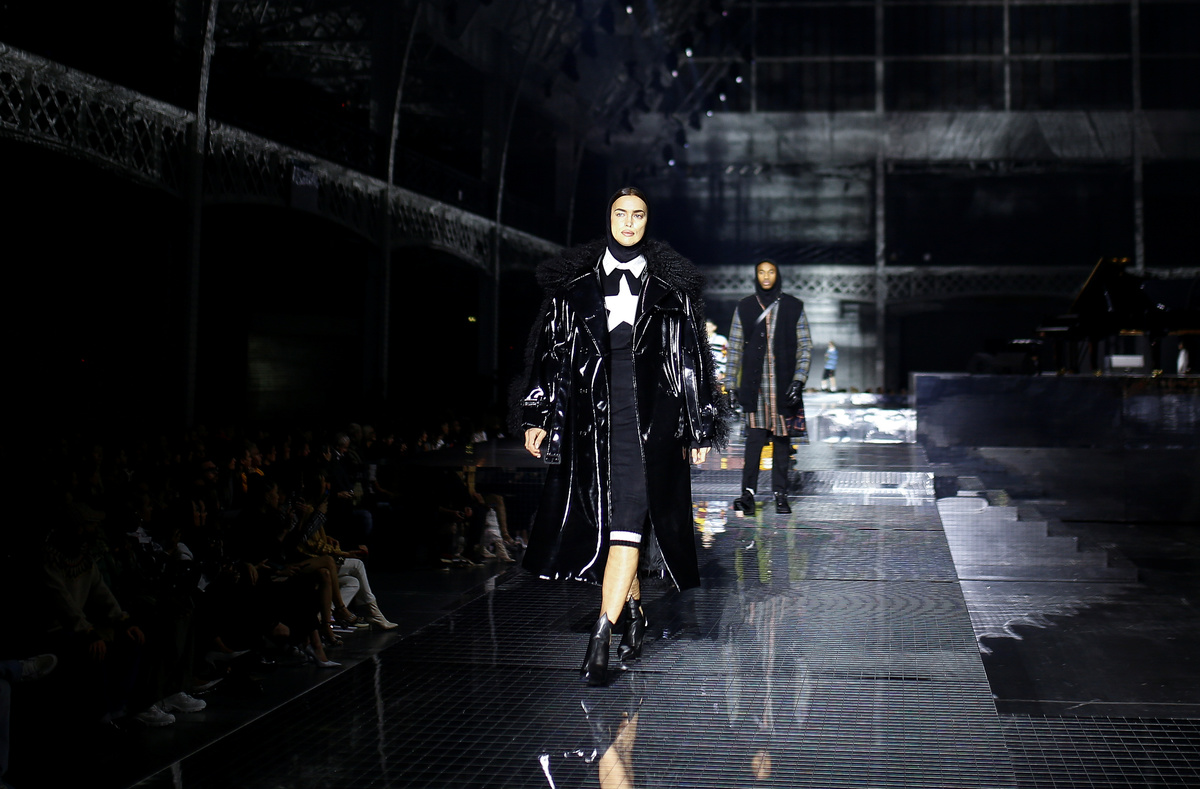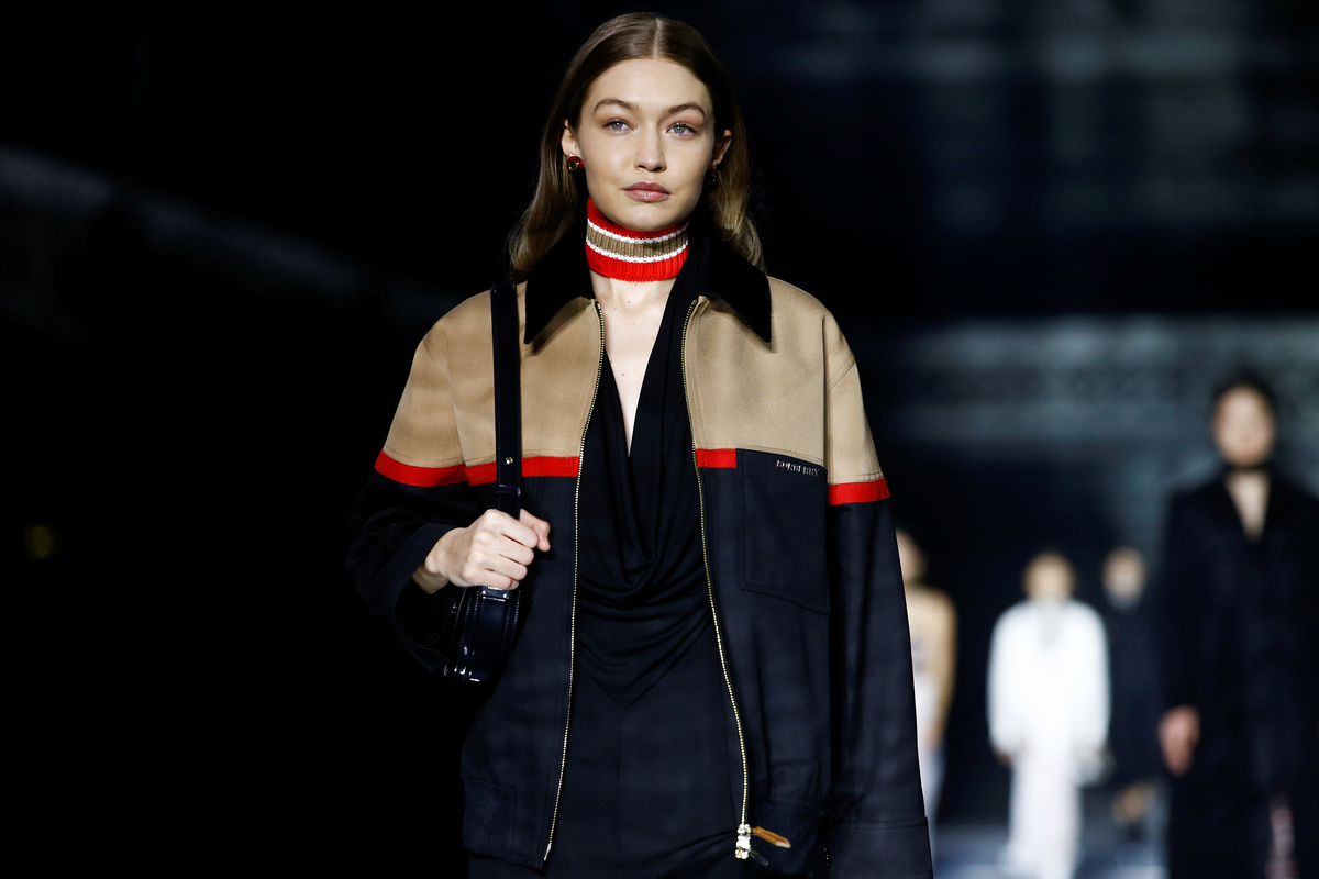 U.S. models Kendall Jenner, Bella Hadid and Gigi Hadid, and Russian Irina Shayk, walked in an Autumn-Winter 2020 collection that featured the house's signature neutral tones and references to old-style English tailoring and vintage sportswear.