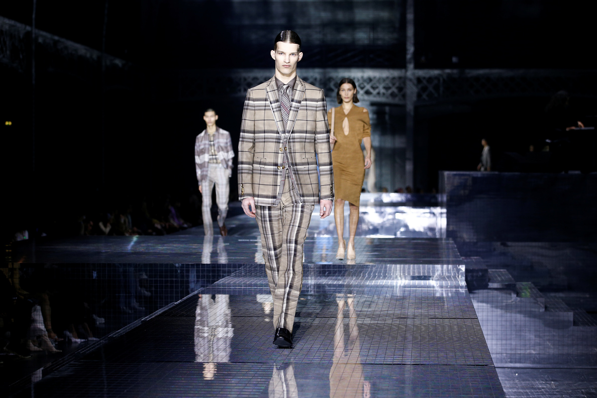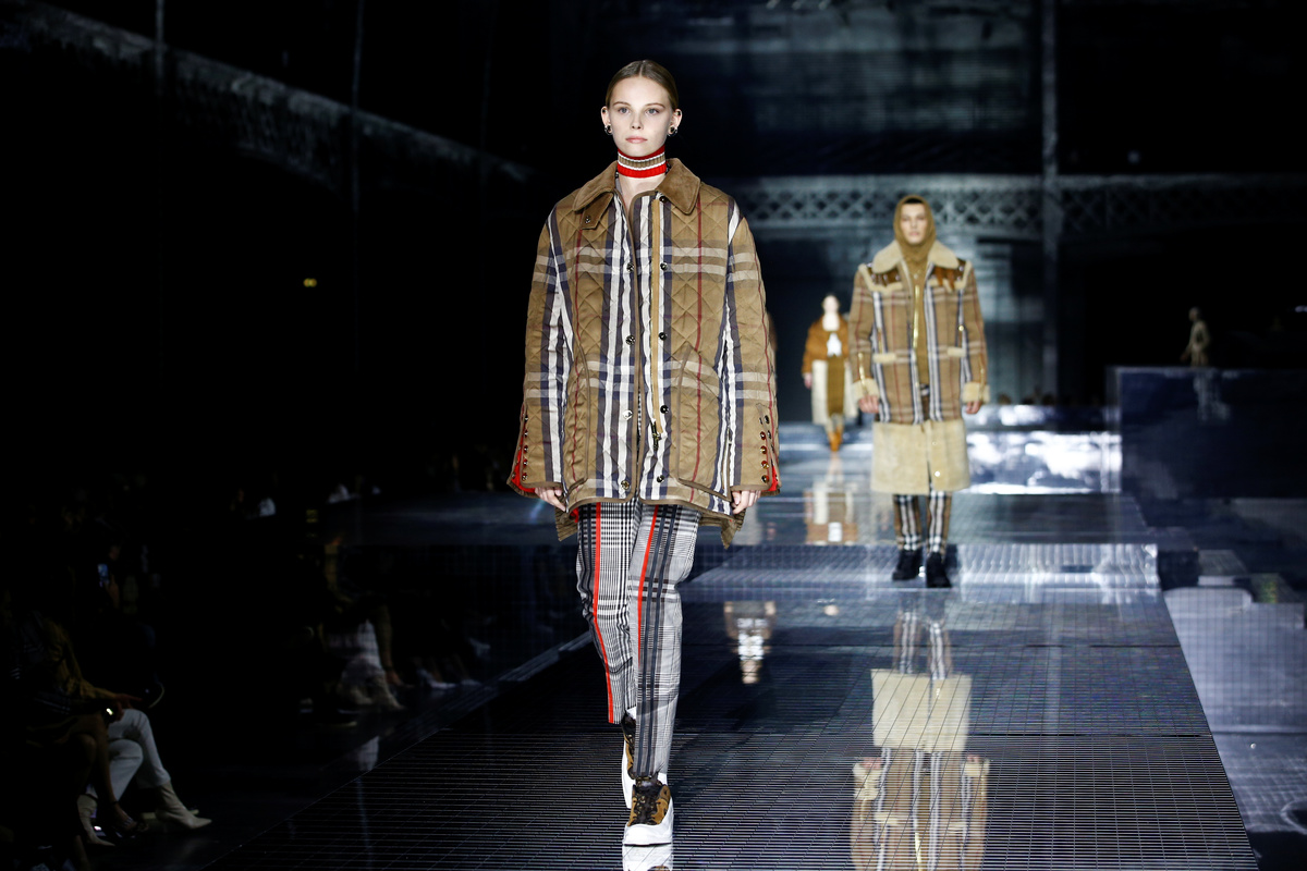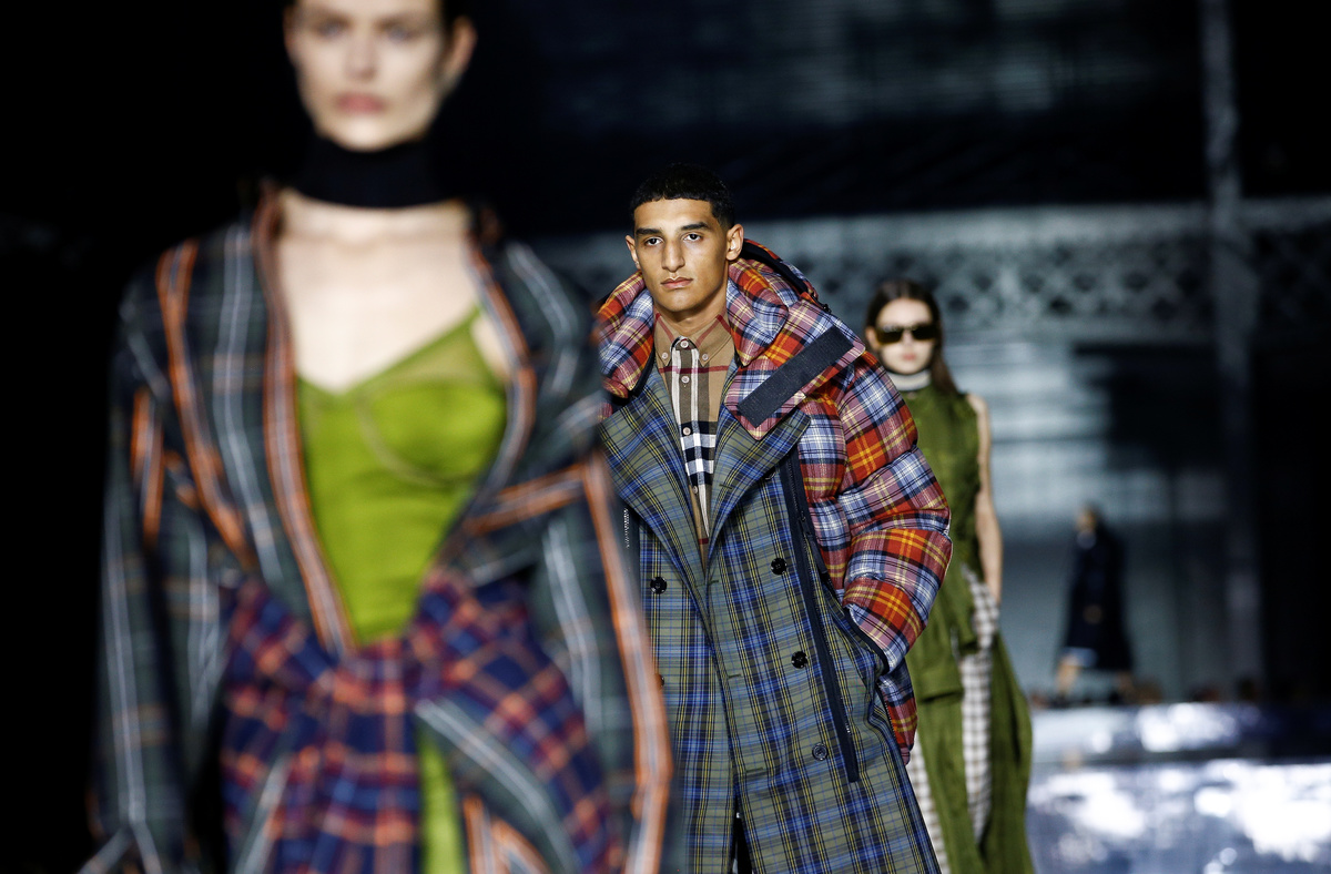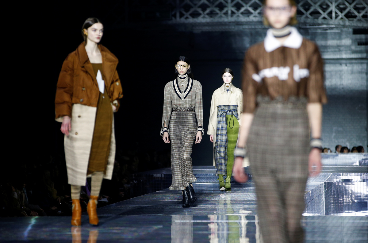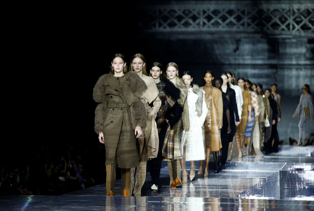 Models present creations during the Burberry catwalk show at London Fashion Week in London, Britain, February 17, 2020. REUTERS/Henry Nicholls