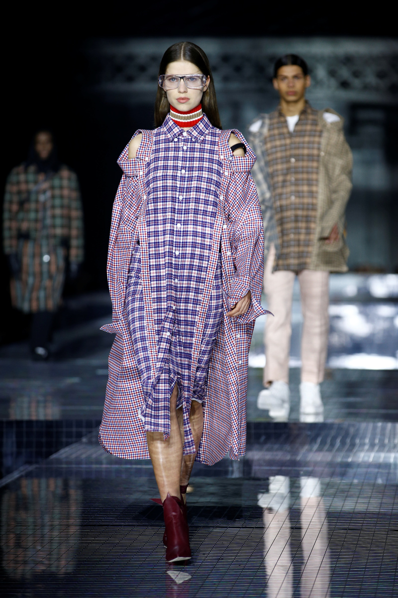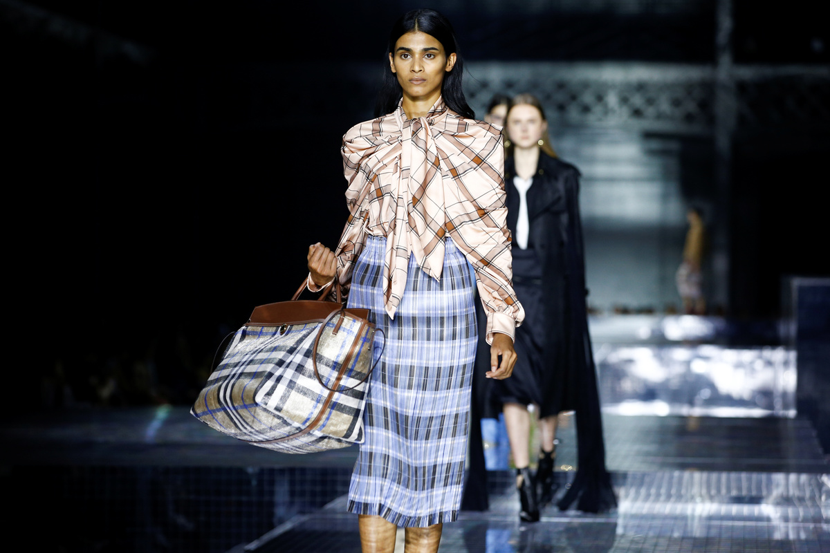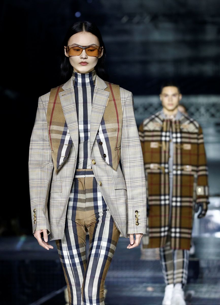 Single outfits combined different sizes and colors of the 164-year-old label's classic check, paired with minimal accessories.