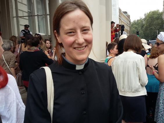 Jenny Dawkins, a curate from All Saints Church in Peckham, joined the demonstration wearing a floor-length black cassock.