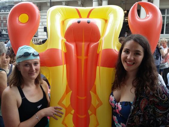 Friends Rebecca and Hannah, carrying a lobster-shaped lilo, said they were also concerned about the growing number of incidents showing xenophobia and racism in the UK.