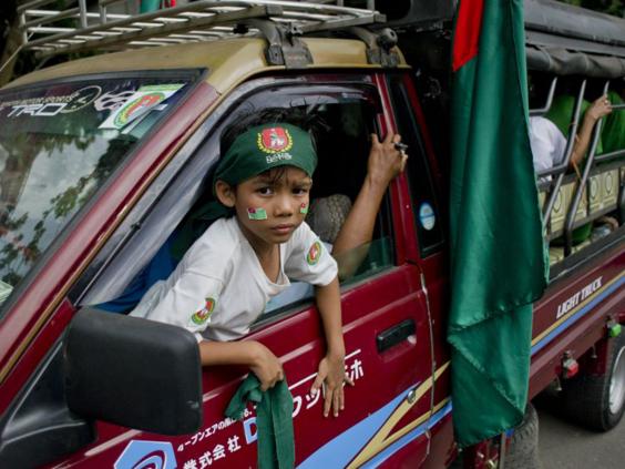 “I love the Lady [Suu Kyi] so much,” said San Moe Aye, holding her four-month-old daughter, named Suu, and wearing an NLD bandanna round her head. “If the NLD wins, the poor will be freed from poverty.” A retired banker sitting nearby said: “I’ve supported the party since 1988. All Burmese people have been suffering for many years, in many different ways. I believe the NLD is the one organisation that can totally change our country.”